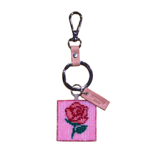 小さなガラスビーズを一粒ずつ織って作ったキーチャーム。織り機を使って手作業で製作しています。 ガラスビーズは装身具アドラブルさん別注です。 赤いバラがガラスの中で静かに輝く。 花びらの香りがそっと語りかける。 忙しい日常に、魔法のようなひと瞬を。 サイズ: 重量:g 素材:ガラスビーズ、牛革、金属パーツ 装身具アドラブル https://www.instagram.com/adorable_beadsaccessory LIRIOTYPUSの製品は、熟練の職人たちによって一つ一つ丁寧に製作しています。また、様々なカラーバリエーションやデザインが揃っているので、お気に入りの一つを見つけてください。